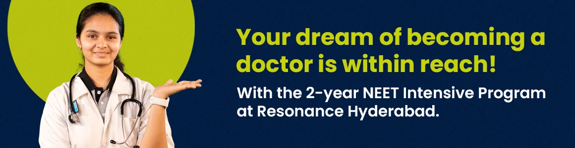 At Resonance Hyderabad, our accomplished faculty thoroughly covers the NEET syllabus for Biology, Physics, and Chemistry within the given timeframe, including the topics from classes XI and XII not covered in the NEET curriculum. To ensure a deep understanding of concepts, we offer doubt-clearing sessions, periodic assessments, and regular classes. Our course materials are continuously updated with detailed explanations, enhanced solved examples, and previous years’ questions. Through national-level tests, performance trackers, and a comprehensive feedback system, aspirants can identify and strengthen the areas they are weak in, boosting their preparation to successfully crack the NEET exam.