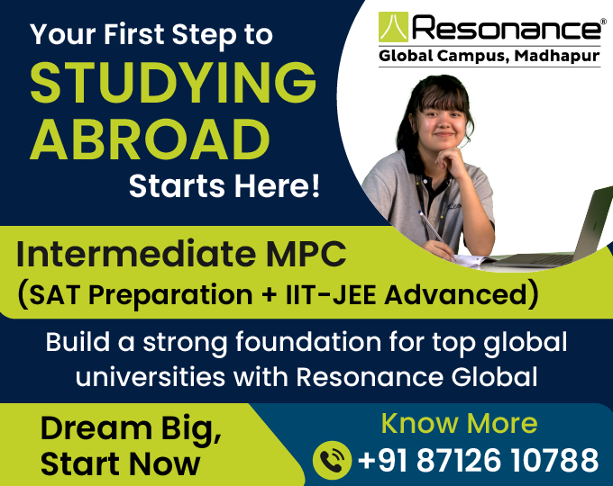 For aspiring global achievers early preparation is the key! That’s why Resonance Hyderabad offers an Intermediate MPC with SAT program for students right after 10th grade.