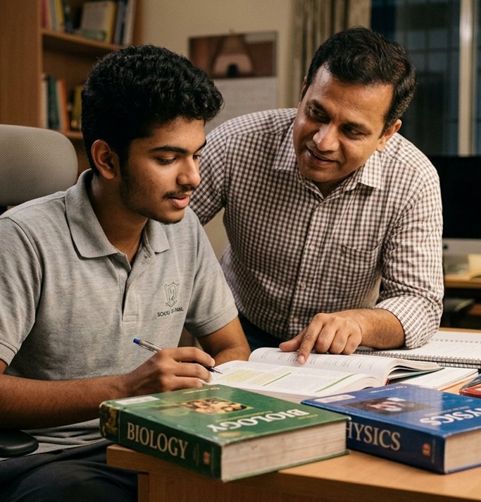 The curriculum is crafted by experts to prepare students for JEE (Main & Advanced) and NEET alongside the Intermediate syllabus. With quality study material, regular tests, and proven teaching methods, students build strong concepts and exam readiness.